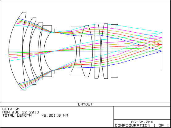 1、設計指標 總長:45mm 最大鏡片口徑:25mm 后工作距離:13mm 光圈:1.8 焦距:35mm